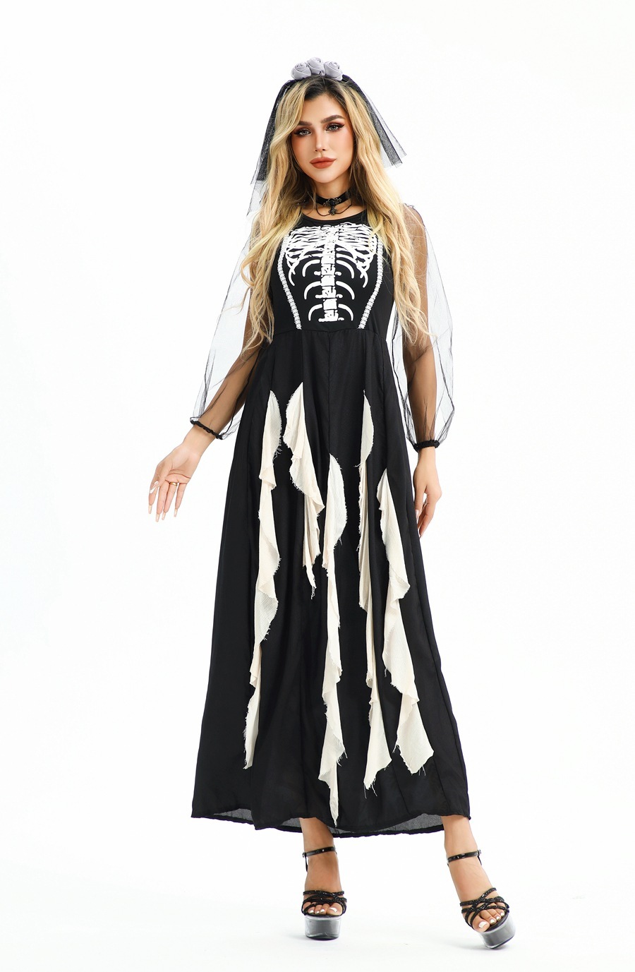 沸騰ブランド 女性用ハロウィンコスチュームダークシリーズ悪魔ゴースト花嫁ロングドレスダークゴースト吸血鬼ホラースケルトンゾンビコスチューム